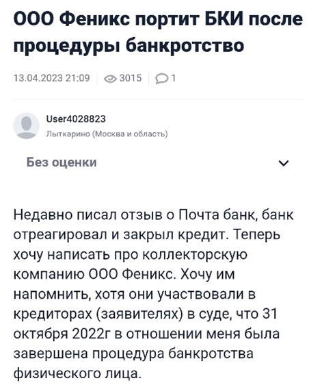 - Тревожат должника в процессе или после завершения банкротства, хотя по закону это запрещено. Например, на такое нарушение пожаловался посетитель сайта Banki.ru:
